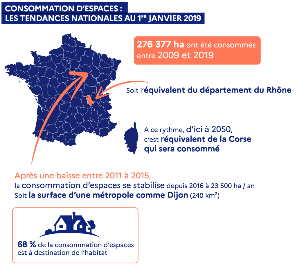 Une première étape est fixée pour les 10 prochaines années avec une réduction de moitié du rythme de l’artificialisation d’ici 2031 par rapport à la période 2011-2021.