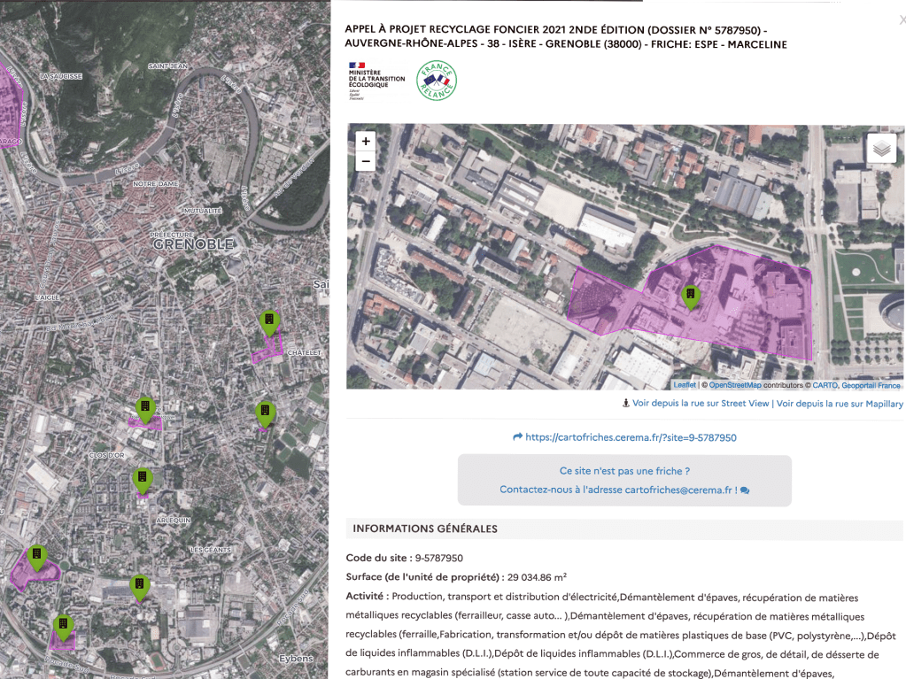 « Le Cerema utilise les données de BASIAS et BASOL, ainsi que d’autres lots de données nationaux (candidatures aux appels à projets, par exemple) pour assurer une pré-identification des friches sur tout le territoire national. »