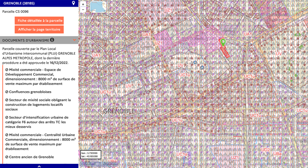 Un propriétaire (ou n’importe quel usager) peut donc connaitre les règles qui s’appliquent sur un terrain simplement en cliquant dessus.