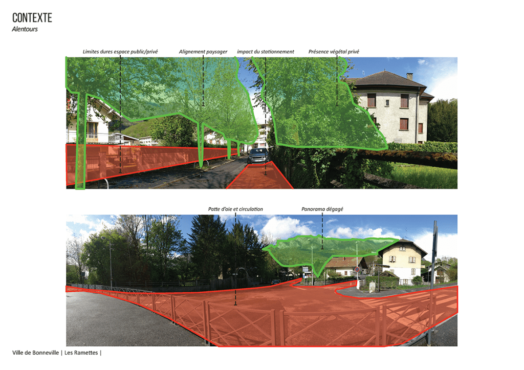 L’espace arboré est à préserver et va s’ouvrir sur la ville autour : sa position stratégique amène à réfléchir les circulations internes et alentours avec la proximité du lycée.